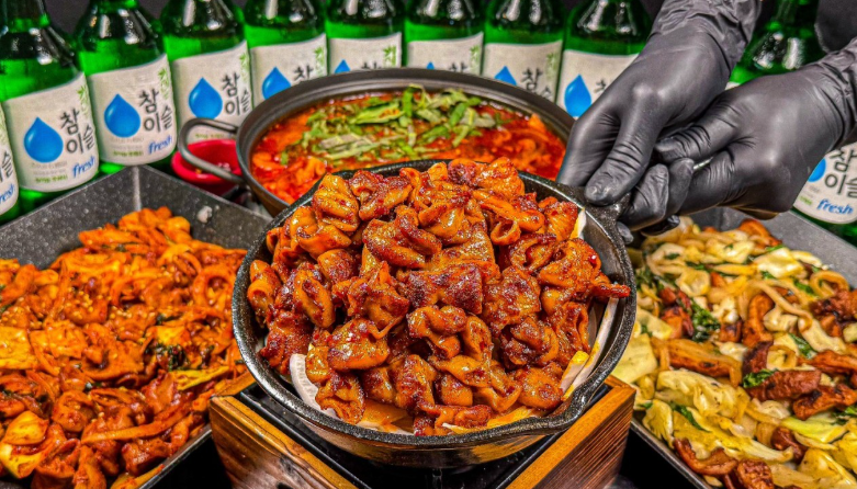 메뉴판에서는 ‘알곱창 단품’부터 ‘모듬곱창’, ‘알+대창+막창’ 세트까지 다양하게 구성되어 있어 취향에 따라 선택할 수 있습니다. 가장 인기 있는 조합은 ‘알곱창+막창+버섯+떡사리’ 세트로, 매콤한 양념과 곱이 가득한 내장이 환상의 조화를 이룹니다. 철판 위에서 구워지는 비주얼은 식욕을 자극하며, 곱이 살짝 터지면서 퍼지는 향기가 진정한 곱창의 묘미를 선사합니다.